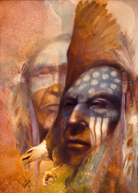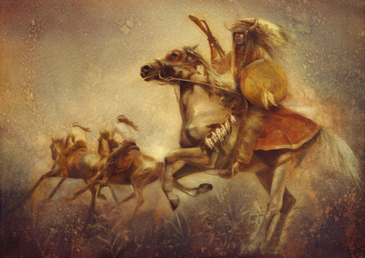 War Party White Modern Wood Framed Art Print with Double Matting by Lund, Denton