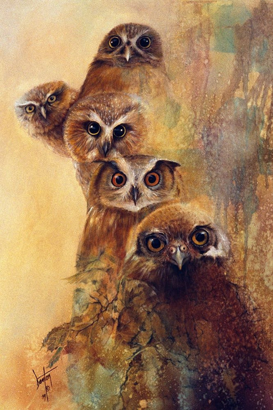 Owl Expressions White Modern Wood Framed Art Print with Double Matting by Lund, Denton