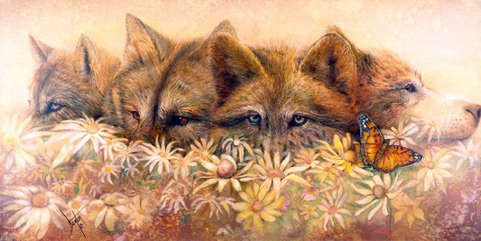 Vision Of The Wolves White Modern Wood Framed Art Print with Double Matting by Lund, Denton