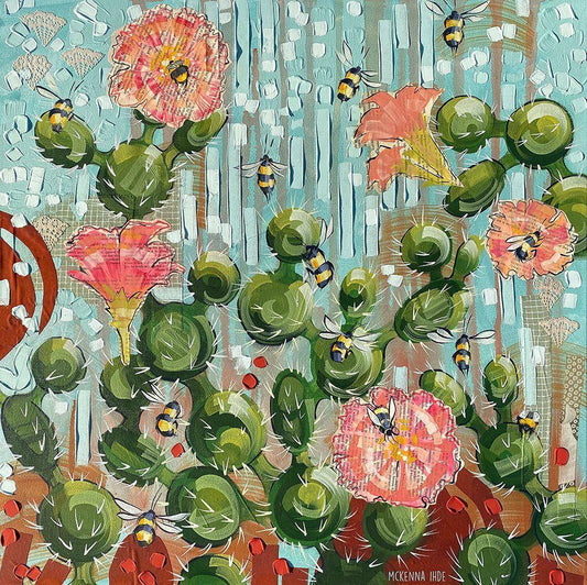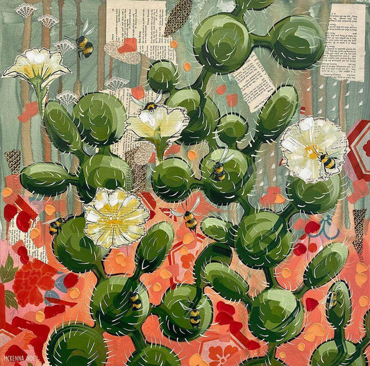 Opuntia and Bees Black Ornate Wood Framed Art Print with Double Matting by Ihde, McKenna