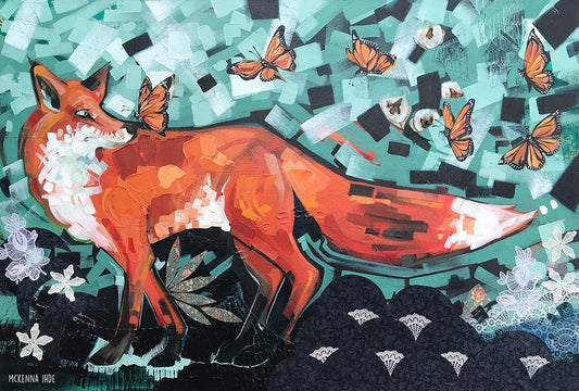 Fox and Monarchs Black Ornate Wood Framed Art Print with Double Matting by Ihde, McKenna