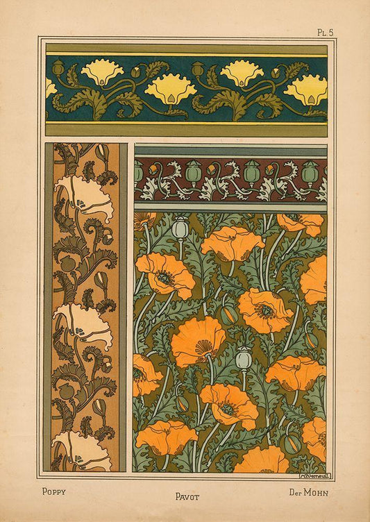Plate 05 - Poppy Black Ornate Wood Framed Art Print with Double Matting by Vintage Apple Collection