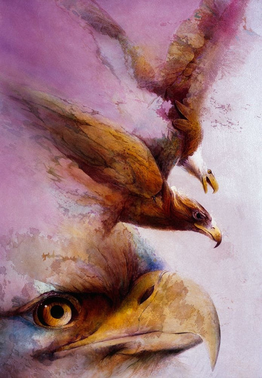 Crimson Eagles Black Ornate Wood Framed Art Print with Double Matting by Lund, Denton
