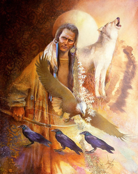 Wicasa Wakan ( The Holy Man) Black Ornate Wood Framed Art Print with Double Matting by Lund, Denton