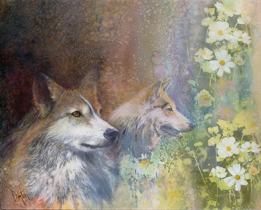 Song Of The White Wolf Black Ornate Wood Framed Art Print with Double Matting by Lund, Denton