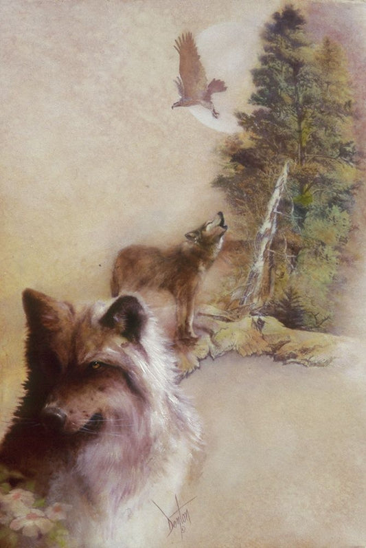 Wolf Cry Black Ornate Wood Framed Art Print with Double Matting by Lund, Denton