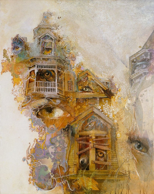Many Mansions Black Ornate Wood Framed Art Print with Double Matting by Lund, Denton