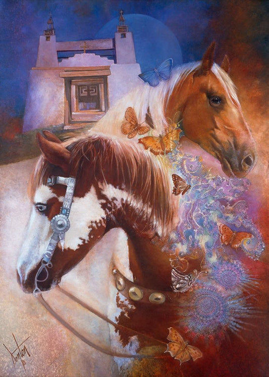 Caballos Y Mariposas (Horses And Butterflies) Black Ornate Wood Framed Art Print with Double Matting by Lund, Denton