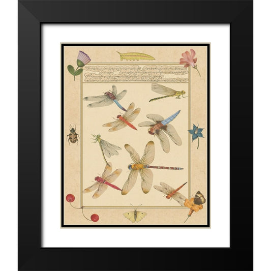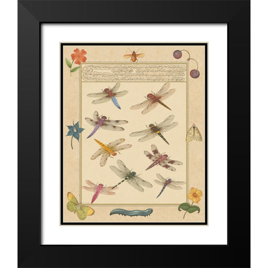 Dragonfly Manuscript III Black Modern Wood Framed Art Print with Double Matting by Prasad, Jaggu