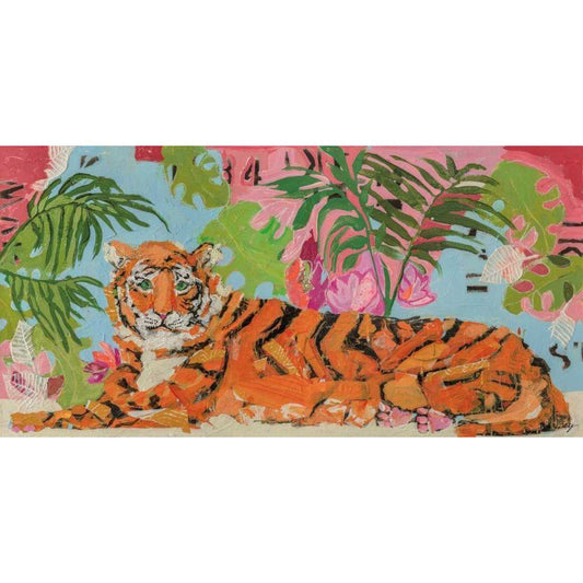 Tiger at Rest Black Modern Wood Framed Art Print with Double Matting by Day, Kellie