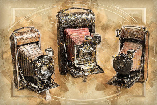 Retro Cameras White Modern Wood Framed Art Print with Double Matting by Bolokofsky, Ronald
