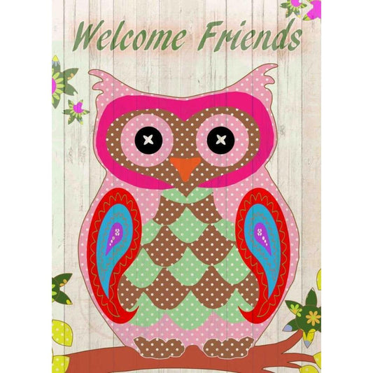 Patchwork Owl Welcome Black Modern Wood Framed Art Print with Double Matting by Allen, Kimberly