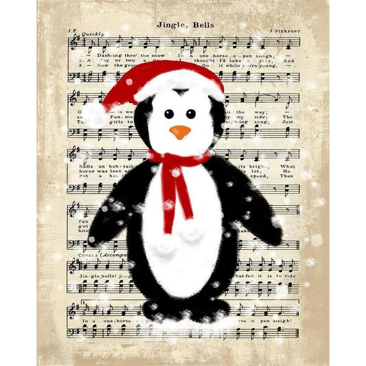 Christmas Penguin Black Modern Wood Framed Art Print with Double Matting by Lavoie, Tina