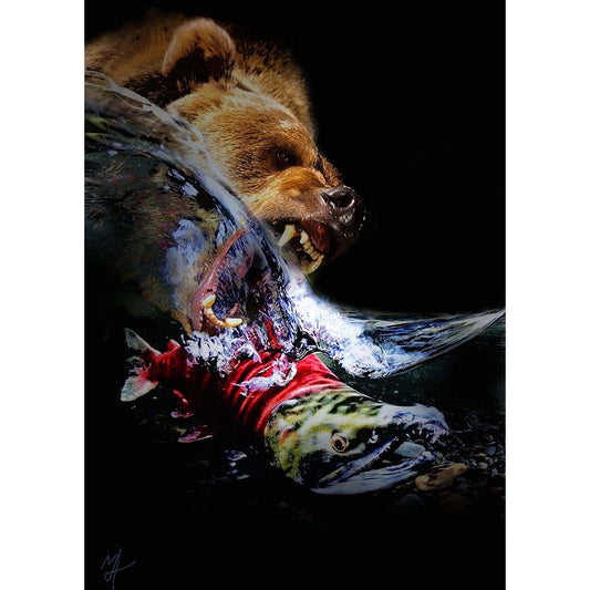 The Grizzly Circle Of Life Black Modern Wood Framed Art Print with Double Matting by Murray Henderson Fine Art