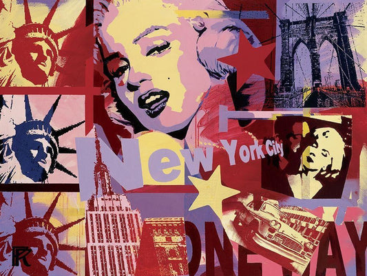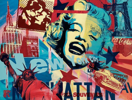 New York souvenirs White Modern Wood Framed Art Print with Double Matting by Raynal, Paul