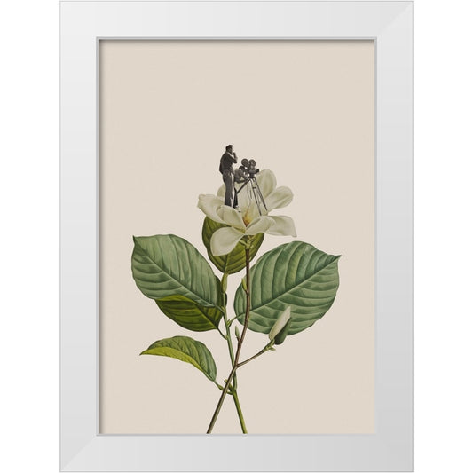 Botanical vintage cameraman White Modern Wood Framed Art Print by Floral Studio, Frida