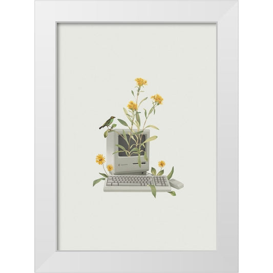 Floral vintage computer White Modern Wood Framed Art Print by Floral Studio, Frida