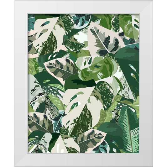 Green jungle leaves White Modern Wood Framed Art Print by Manovski, Sarah