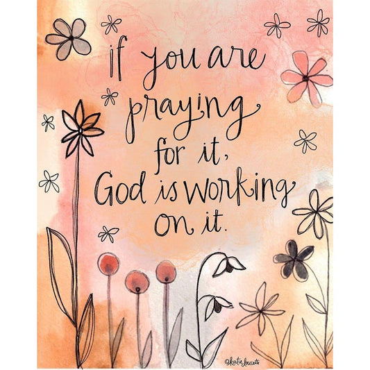 God is Working White Modern Wood Framed Art Print by Doucette, Katie