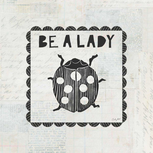 Ladybug Stamp Be A Lady White Modern Wood Framed Art Print by Prahl, Courtney