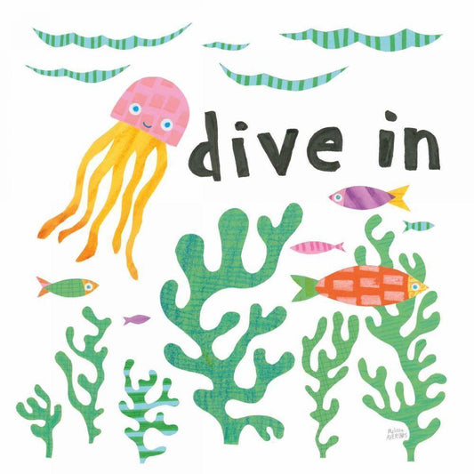 Fish in the Sea II Aqua White Modern Wood Framed Art Print by Day, Kellie