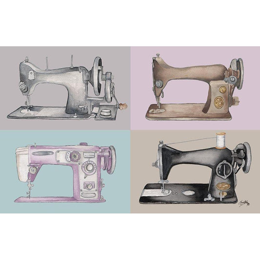 Sewing Machine Collage White Modern Wood Framed Art Print by Baker, Mary Beth