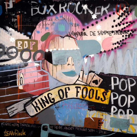 King of fools White Modern Wood Framed Art Print by Punk, Sean