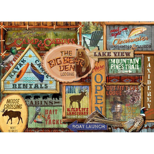 Lodge Sign Collage White Modern Wood Framed Art Print by Art Licensing Studio