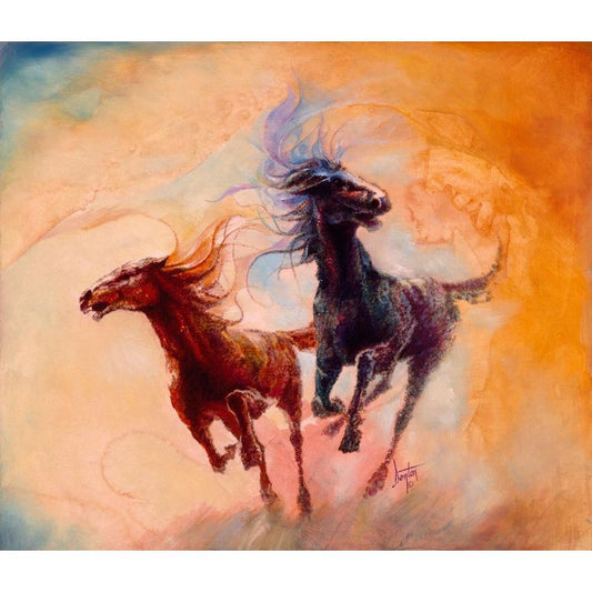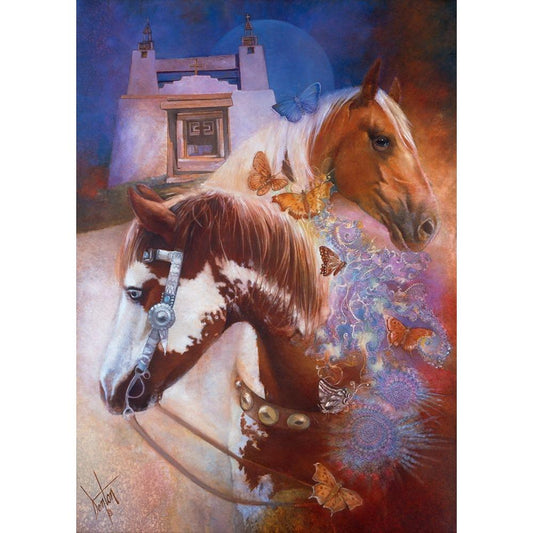 Caballos Y Mariposas (Horses And Butterflies) Gold Ornate Wood Framed Art Print with Double Matting by Lund, Denton