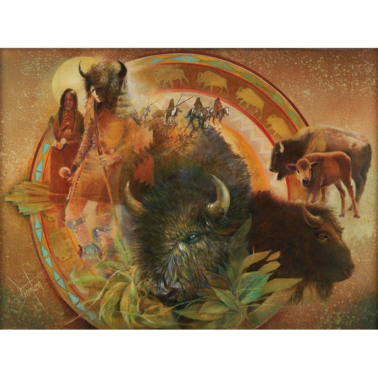 Spirit Of Tatanka Gold Ornate Wood Framed Art Print with Double Matting by Lund, Denton