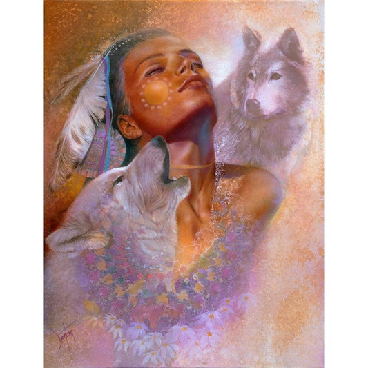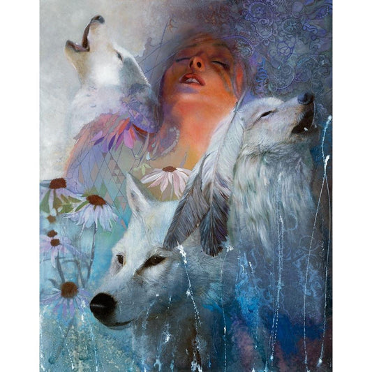 Vision Of The Wolf Gold Ornate Wood Framed Art Print with Double Matting by Lund, Denton