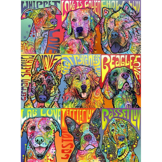 Nine Up of Dogs Gold Ornate Wood Framed Art Print with Double Matting by Dean Russo Collection