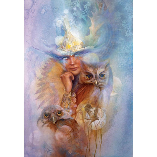 Athena And The Owls Gold Ornate Wood Framed Art Print with Double Matting by Lund, Denton
