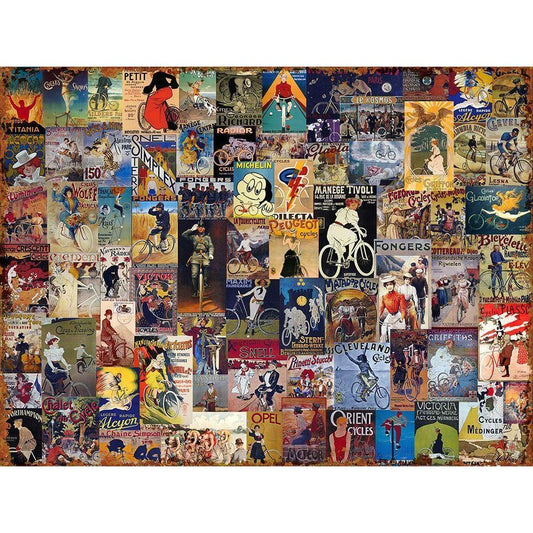 World Bicycle Tour Collage Gold Ornate Wood Framed Art Print with Double Matting by Art Licensing Studio
