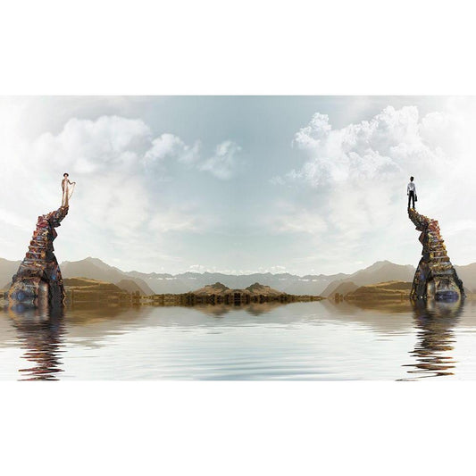 Kugelwelt Sonnenuntergang am See Black Modern Wood Framed Art Print by Fischer, Rolf
