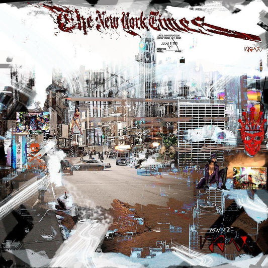 Gris New York Black Modern Wood Framed Art Print by MN.FF