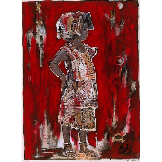 Red African Black Modern Wood Framed Art Print by Wiley, Marta
