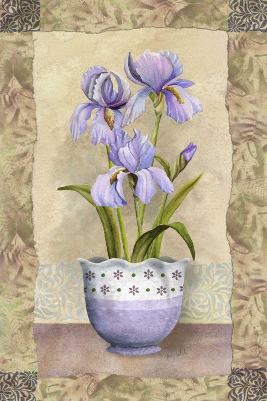 Spring Iris White Modern Wood Framed Art Print with Double Matting by White, Abby