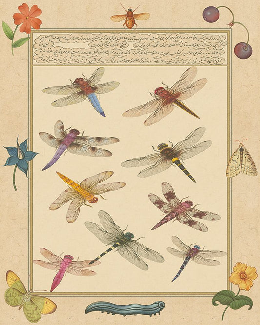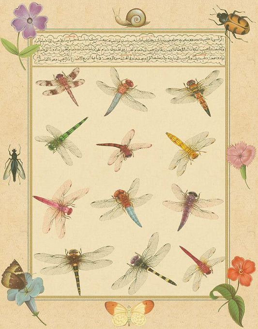 Custom Dragonfly Manuscript I (HI) White Modern Wood Framed Art Print with Double Matting by Prasad, Jaggu