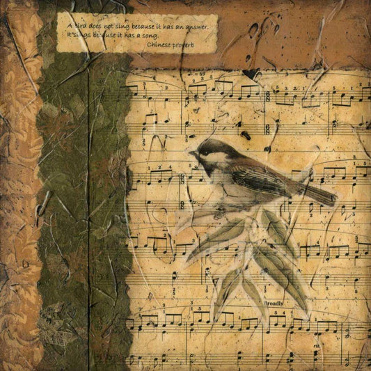 Bird Melody I White Modern Wood Framed Art Print with Double Matting by Slocum, Nancy