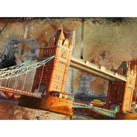 London Bridge Black Modern Wood Framed Art Print by Simons