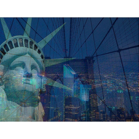 New York City Night Black Modern Wood Framed Art Print by Simons