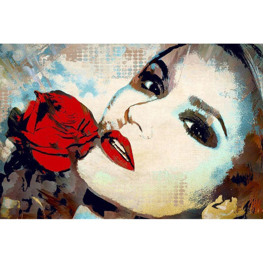 Red Lips and Red Rose Black Modern Wood Framed Art Print by Bolokofsky, Ronald