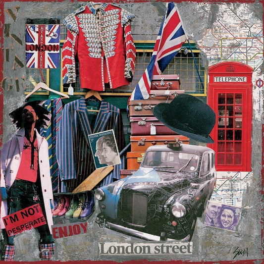 London street Black Modern Wood Framed Art Print by Sigrid, M.