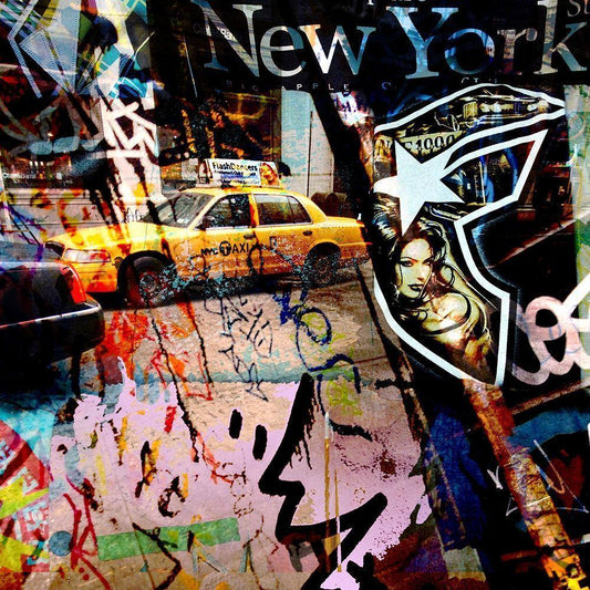 NY Graffiti Black Modern Wood Framed Art Print by Bouteiller, Cedric