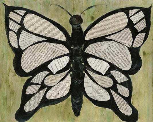 Butterfly Text White Modern Wood Framed Art Print with Double Matting by Choate, Lisa