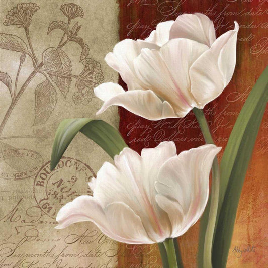 French Tulip Collage I White Modern Wood Framed Art Print with Double Matting by White, Abby