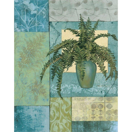 Aqua Blue Fern Collage Black Modern Wood Framed Art Print by Unknown