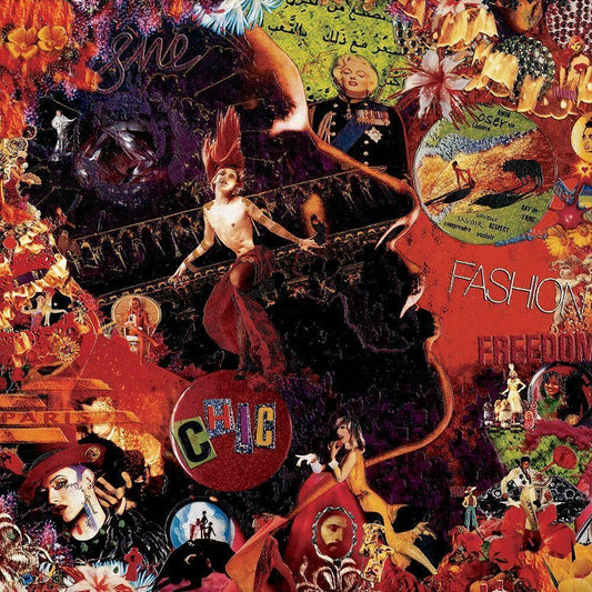 Red Peony Collage Black Modern Wood Framed Art Print by Unknown