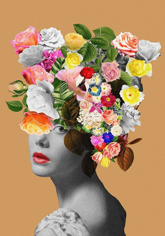 Floral portrait Black Modern Wood Framed Art Print by Floral Studio, Frida